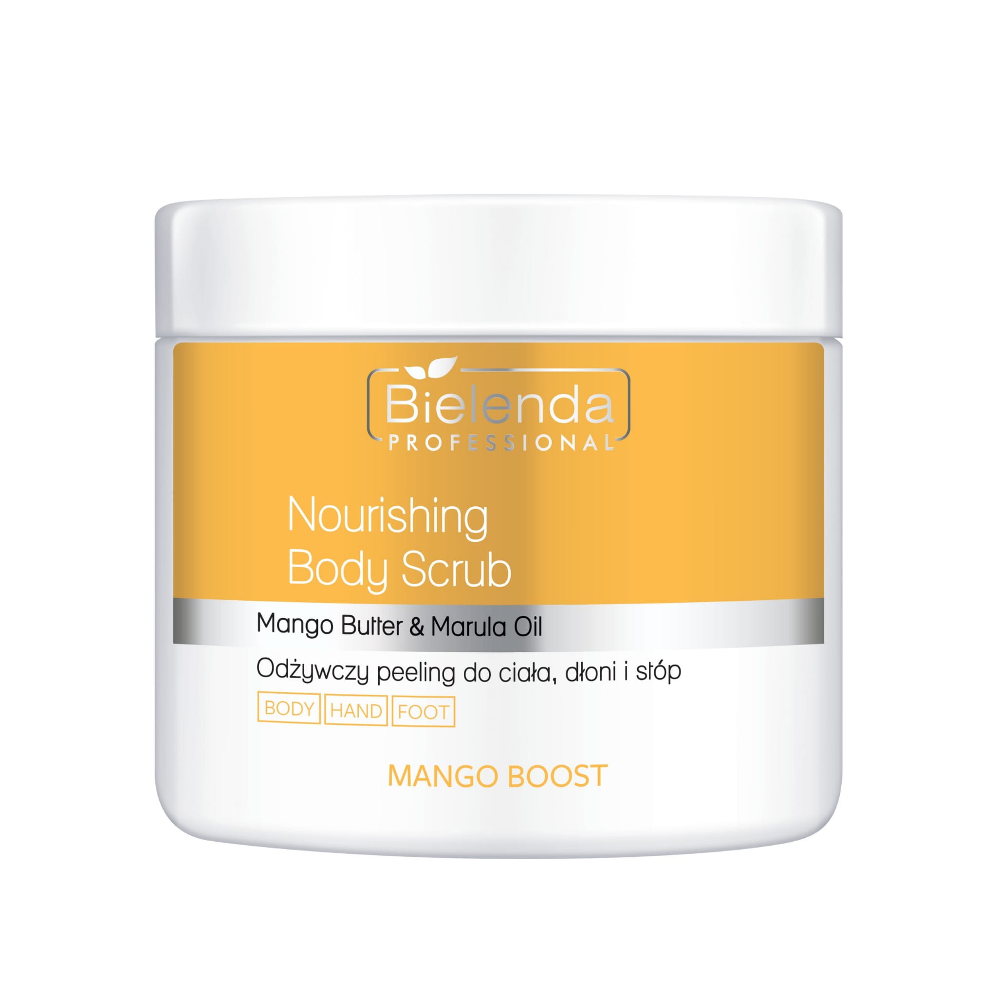 Odżywczy peeling do ciała, dłoni i stóp MANGO BOOST od Bielenda Professional to wyjątkowy kosmetyk do pielęgnacji dla każdego typu skóry, szczególnie suchej i wymagającej intensywnego odżywienia oraz regeneracji. Zawarte Masło Mango, Ekstrakt z Mango, Olej Marula, Jojoba, Awokado, wsparte drobinkami cukru, delikatnie złuszczają martwy naskórek, intensywnie nawilżają, wygładzają i dotleniają skórę, przygotowując ją do wchłaniania kolejnych składników aktywnych i pozostawiając ją jedwabiście gładką.
